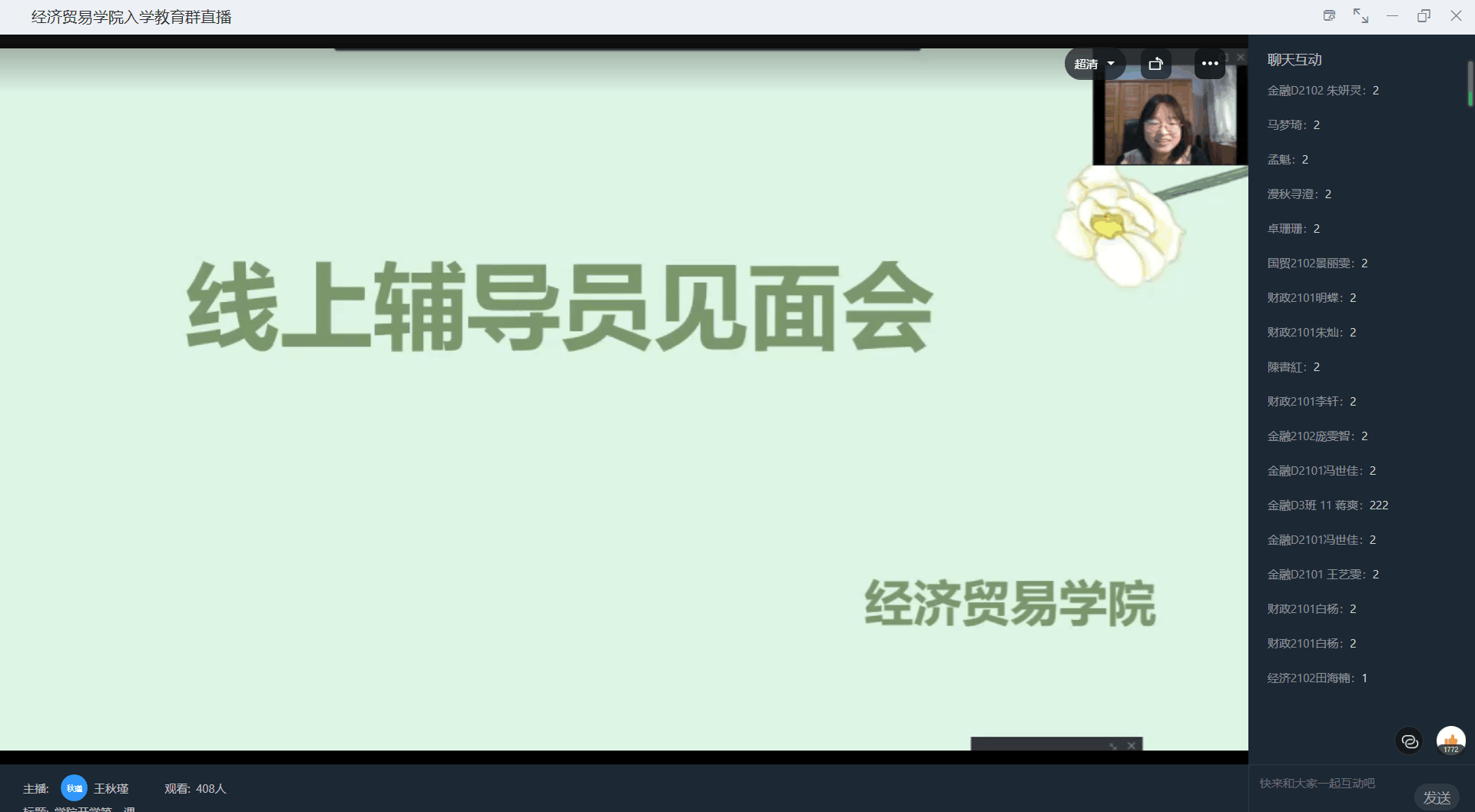 9月4日下午,组织各班班主任、班助与学生的第一次线上见面,期间师生围绕本学期的教学内容和高中向大学学习方式的转变进行高效的交流与沟通,各班班助也为新生进行了答疑解惑,在学习和生活等方面引导新生做好学业生涯规划,帮助新生尽快融入大学生活。接着,召开了学生会部门宣讲会,向新生介绍部门主要工作、职责与义务以及招新要求。