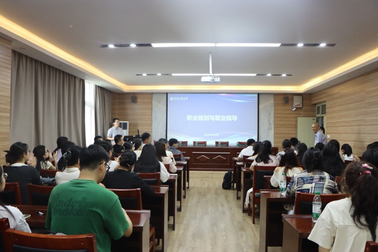 在博识楼3605会议室召开2024级研究生职业规划与就业指导教育大会。特邀企业导师张善正、李明俊和代绍礼为主讲嘉宾,院长李文启,副院长程晓林,教师代表赵素芳,研究生辅导员张瑞玲和全体2024级研究生参加会议,会议由程晓林主持。