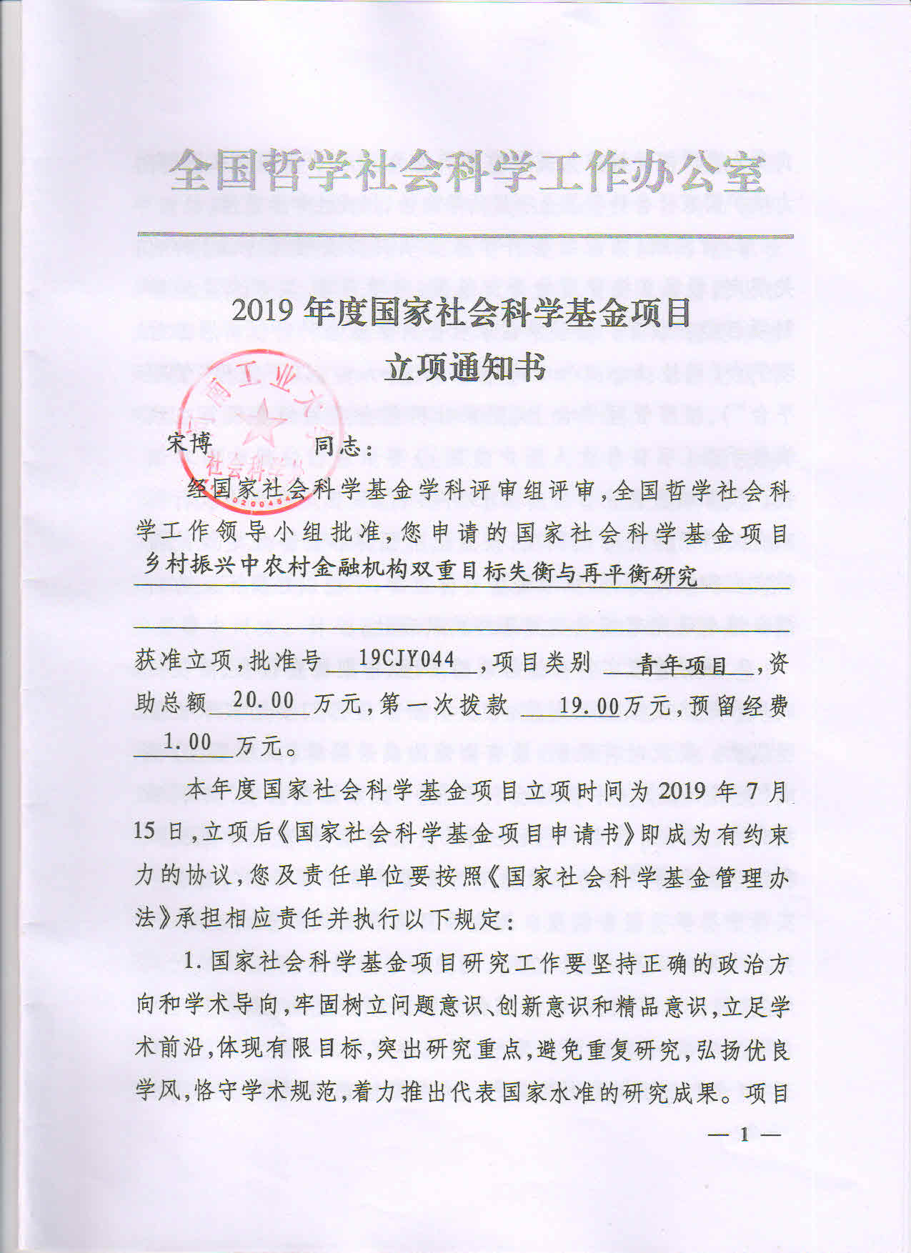 国家社科和自科基金项目——乡村振兴中农村金融机构双重目标失衡与再平衡研究