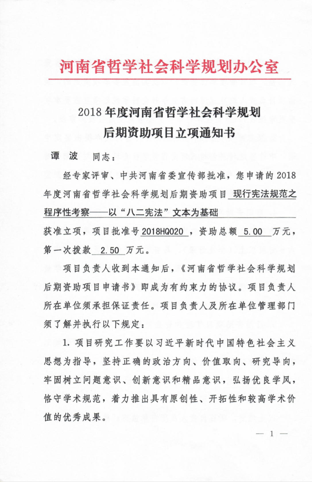 省级人文社科项目——现行宪法规范之程序性考察——以“八二宪法”文本为基础