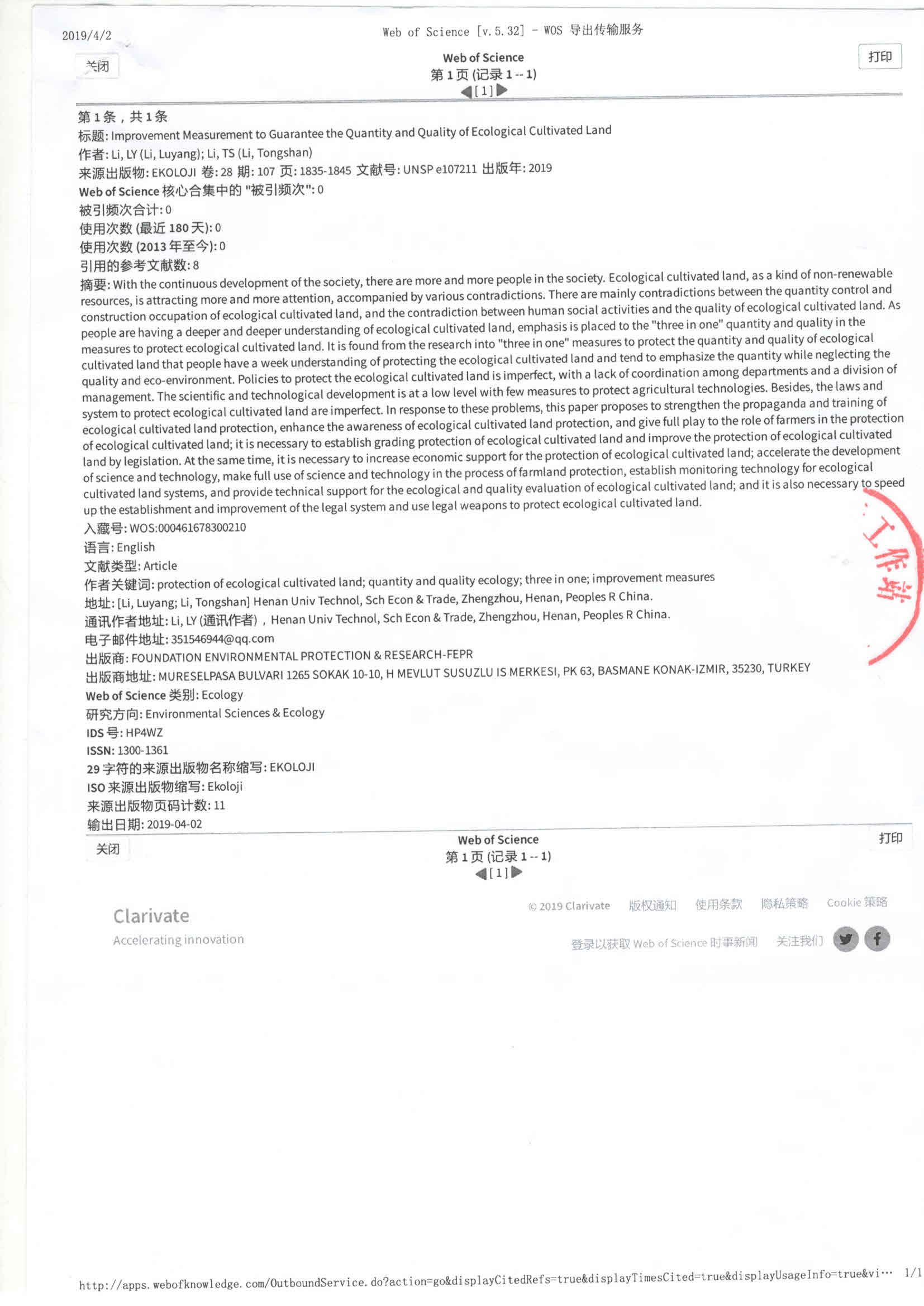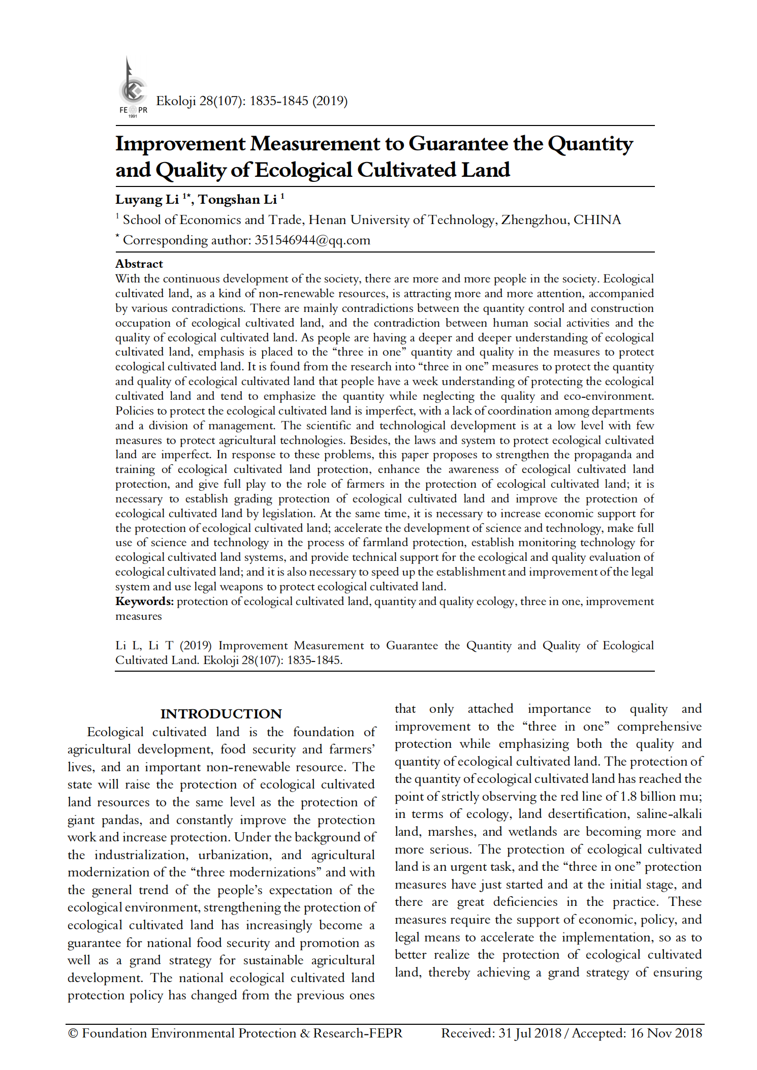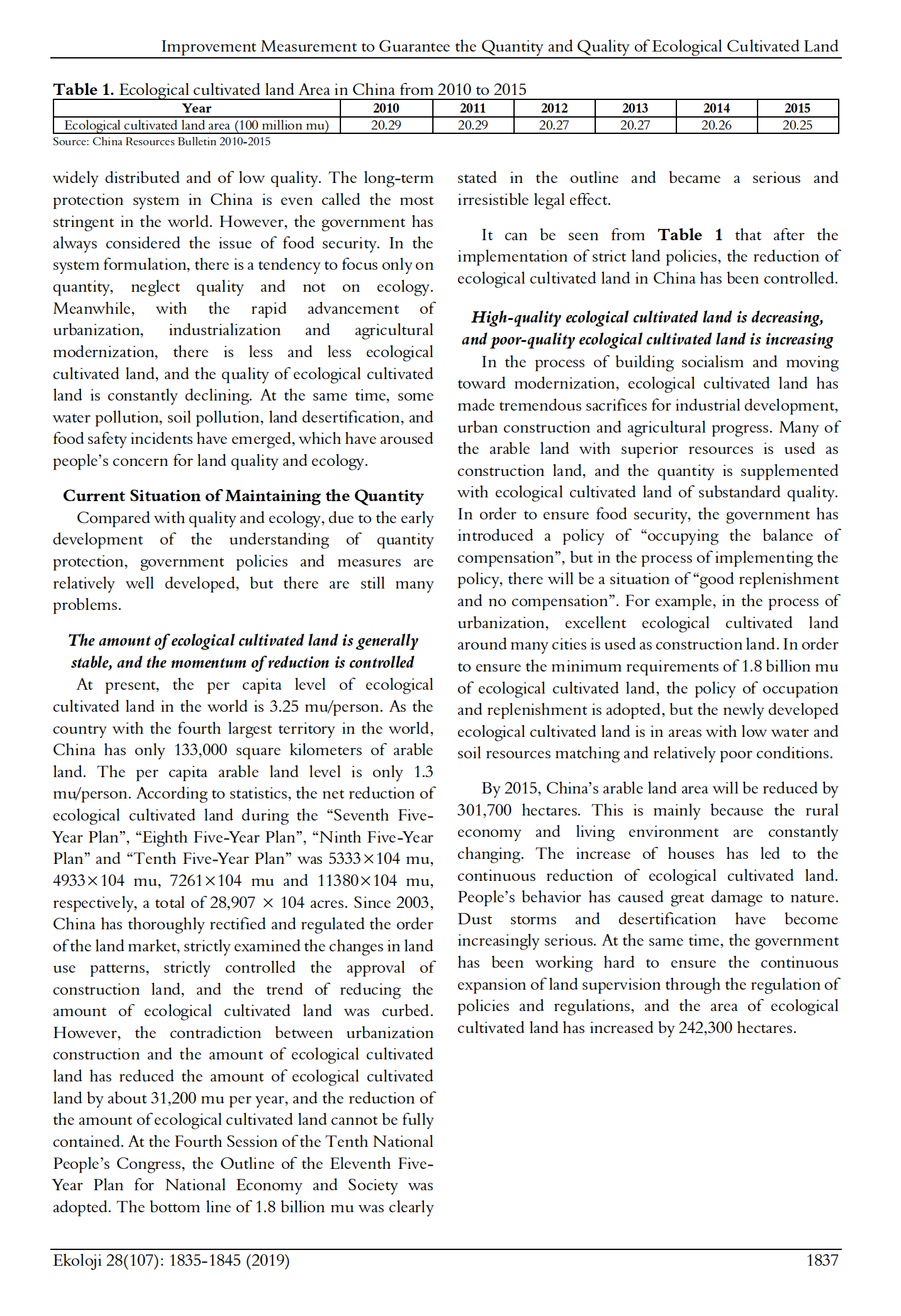 高水平论文1——Impntirovement Measurement to Guarantee the Quantity and Quality of Ecological Cultivated Land