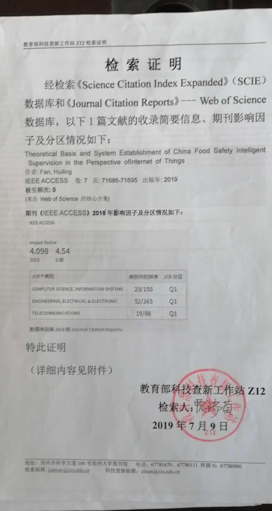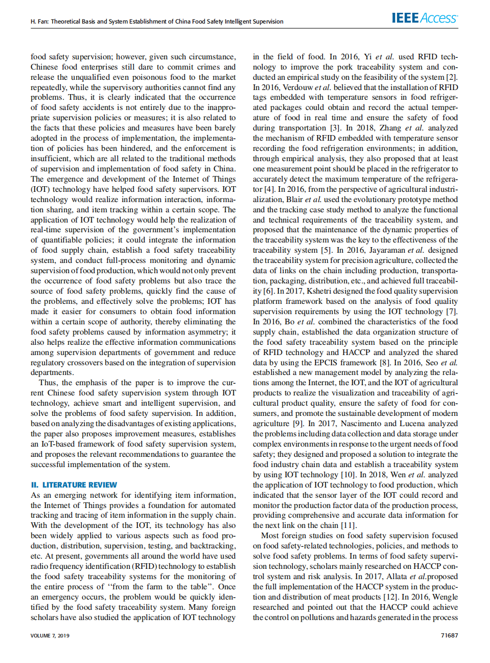 高水平论文8——Theoretical Basis and System Establishment of China Food Safety Intelligent Supervision in the Perspective ofinternet of things