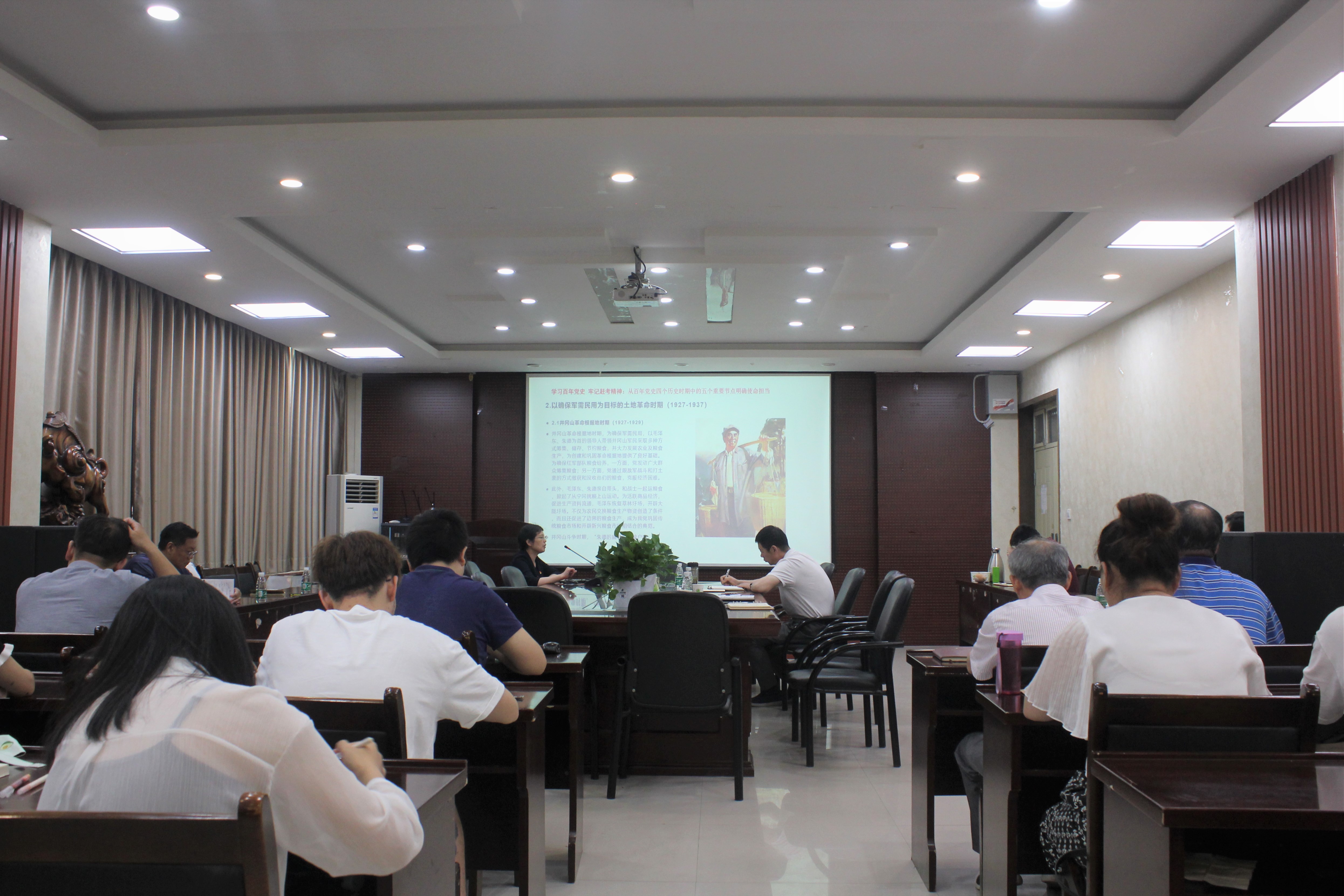 在3501开展以《学习百年党史,牢记赶考精神——中国共产党为什么能解决好中国人的“饭碗”问题》为主题的专题党课。院长孙中叶担任主讲人,学院部分教工党员与学生党员聆听了本次党课。